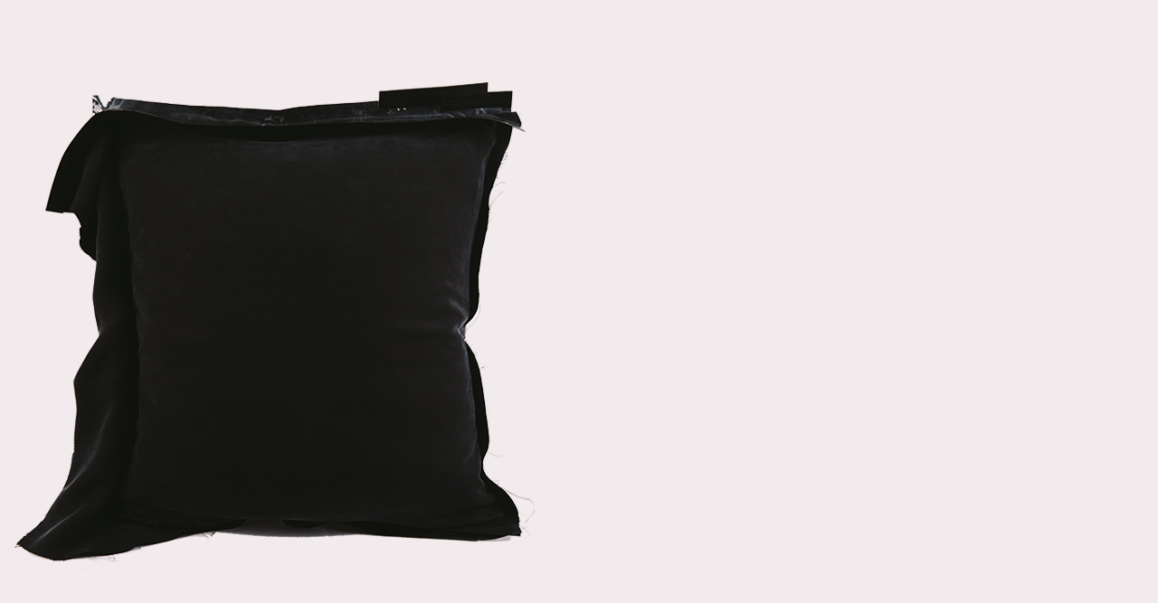 From the pillow series Square which uses unusual materials including plastic bags, silver mylar and fishing rod. Neil Gilks crafted these surprising materials into beautiful and naïve embroideries that make the pillows more art pieces than household items.